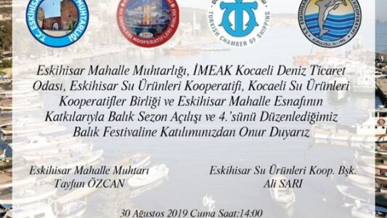 Eskihisar Mahalle Muhtarlığı, İMEAK Kocaeli Deniz Ticaret Odası, Eskihisar Su Ürünleri Kooperatifi, Kocaeli Su Ürünleri Kooperatifler Birliği ve Eskihisar Mahalle Esnafının katkılarıylabu yıl da Eskihisar'da Balık sezonu açılışı ve 4. Balık Festivali halka açık olarak gerçekleştirilecek.